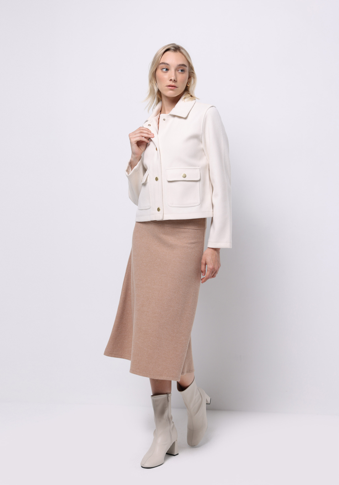 Fusta Bej Femei: 51% Bumbac, 49% Poliester