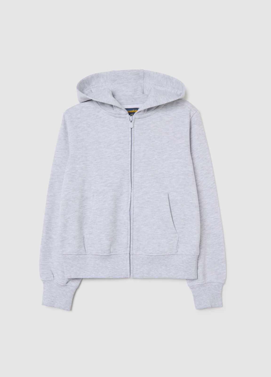 Tip Produs: Hanorac gri pentru fete, din bumbac 100%, croială regular, cu fermoar