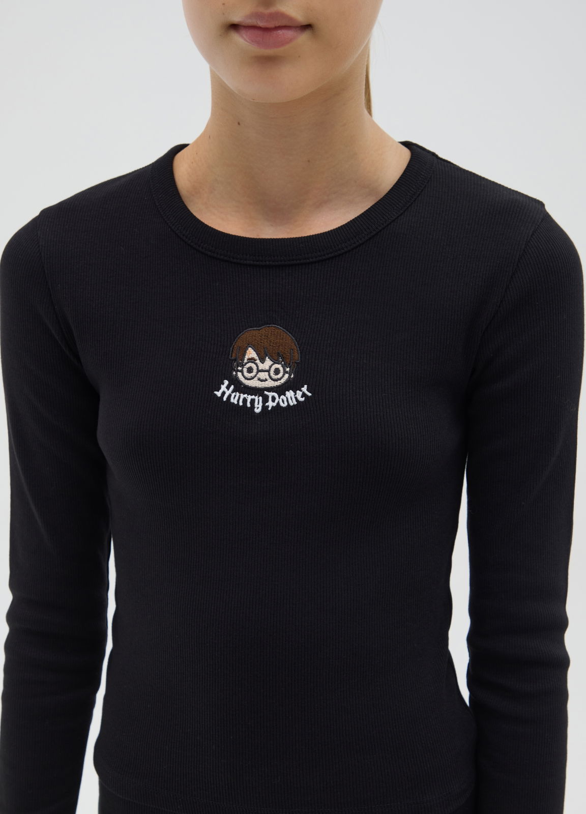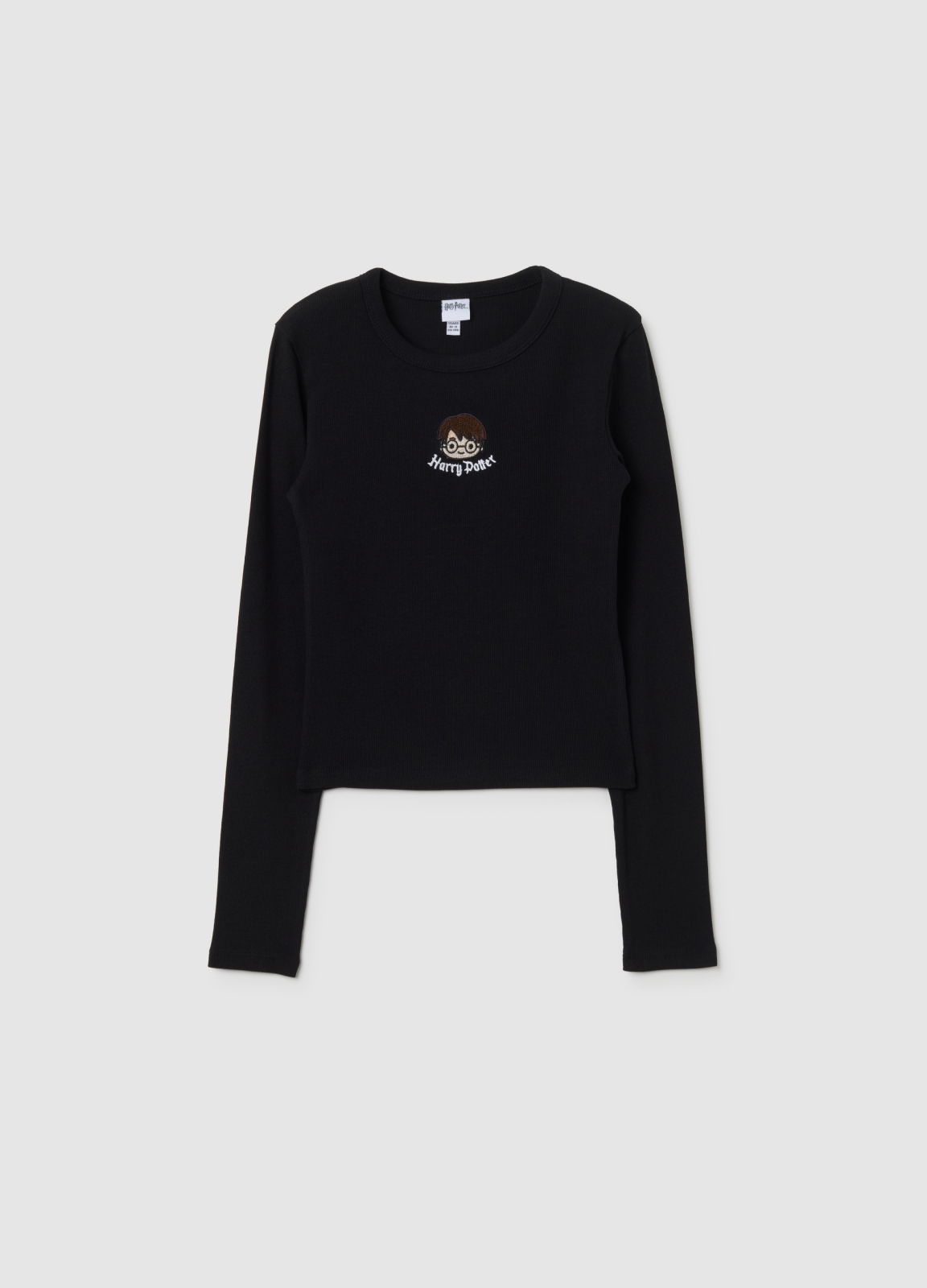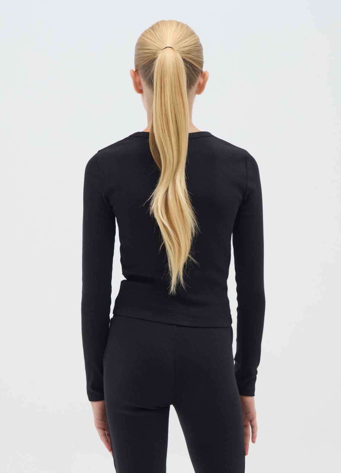 Tip Produs: Top negru pentru fată, din bumbac elastic, croială regular