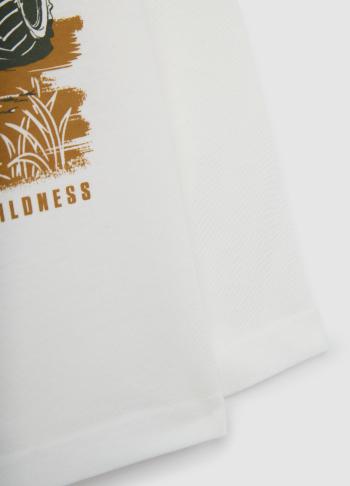 Tip Produs: Tricou alb din bumbac cu mânecă lungă Caracteristici: Tricou alb din bumbac cu mânecă lungă, croială regular, confortabil pentru vârsta 3-10 ani. Culoare: Alb/Verde Compozitie: 100% BUMBAC Spalare: TEMPERATURA MAXIMĂ DE SPĂLARE 30°C - PROCES NORMAL Calcare: CĂLCARE LA TEMPERATURA MAXIMĂ A PLĂCII DE 150°C