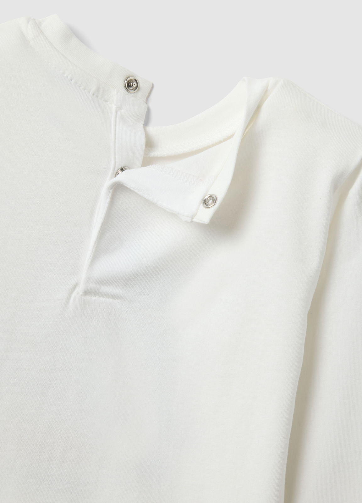 Caracteristici: Tricoul alb cu mânecă lungă din linia Fagottino este o piesă versatilă și confortabilă pentru copii cu vârsta între 9 și 36 de luni, realizată din bumbac 100%. Materialul oferă finețe și confort pe tot parcursul zilei. Gulerul rotund facilitează îmbrăcarea, iar închiderea la spate cu doi nasturi asigură practicitate. Imprimeul adaugă un aer jucăuș piesei.