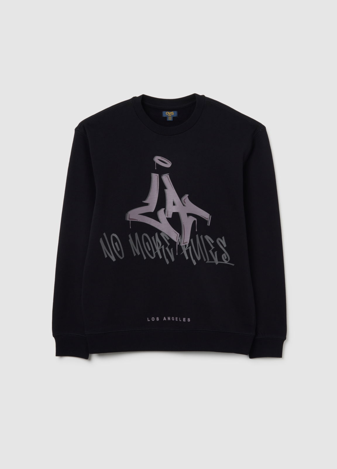 Caracteristici: Hanorac băieți negru oversized din bumbac 100%, cu imprimeu grafic urban, ideal pentru zile reci de toamnă-iarnă.