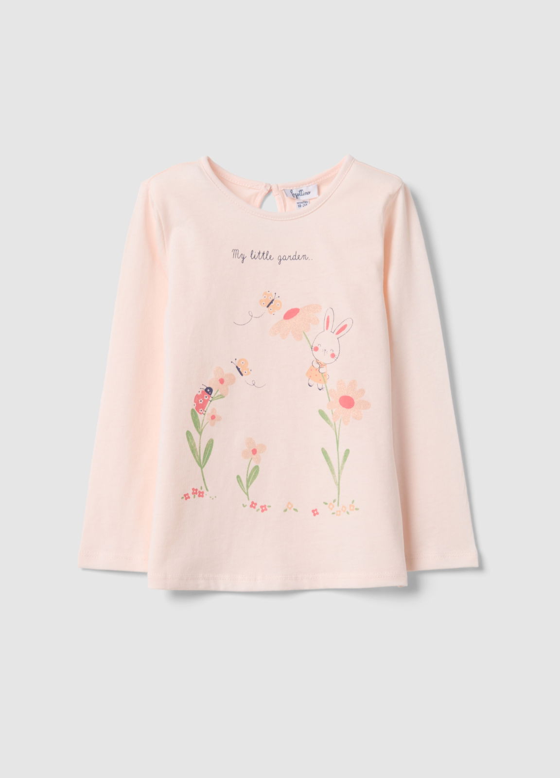 Tip Produs: Tricou roz din bumbac cu mânecă lungă pentru fete, cu imprimeuri