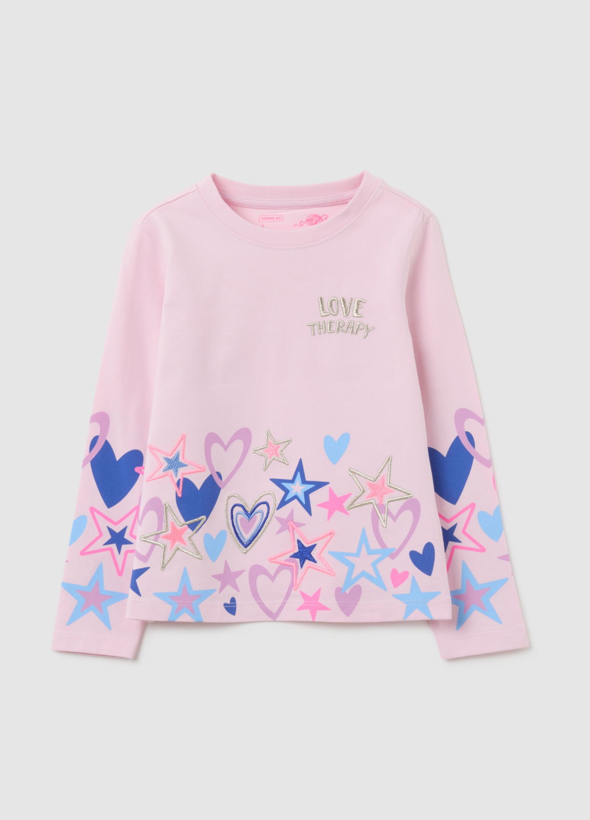 Caracteristici: Tricou Love Therapy pentru fete, cu modele de stele și inimi colorate. Realizat din material moale pentru a oferi confort pe tot parcursul anului. Perfect pentru a adăuga o notă veselă ținutelor de zi cu zi.