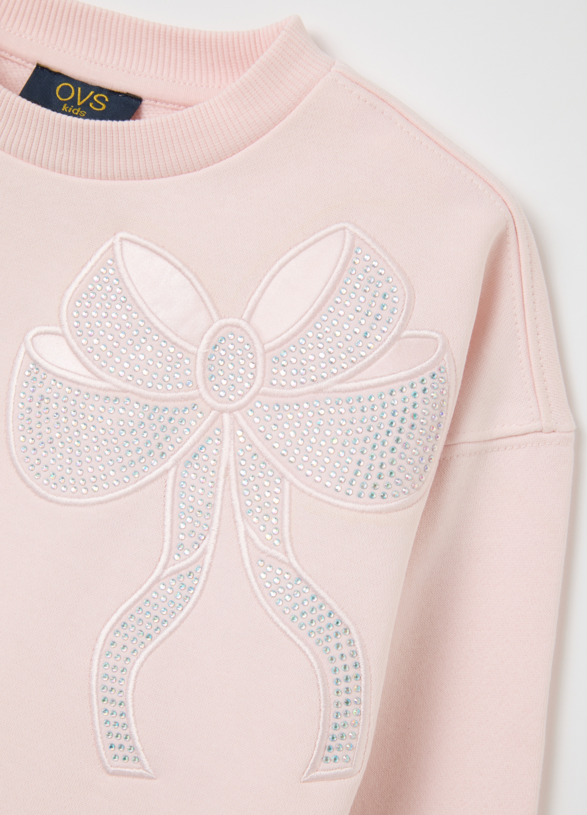Tip Produs: Hanorac roz pentru fete, din amestec de bumbac, cu fundiță