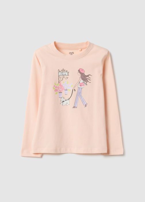Caracteristici: Tricou bej cu mânecă lungă, linia OVS KIDS, 100% bumbac, confortabil și moale pentru fete 3–10 ani. Imprimeu jucăuș, guler rotund, croială regular, ușor de îmbrăcat și ideal pentru look casual.