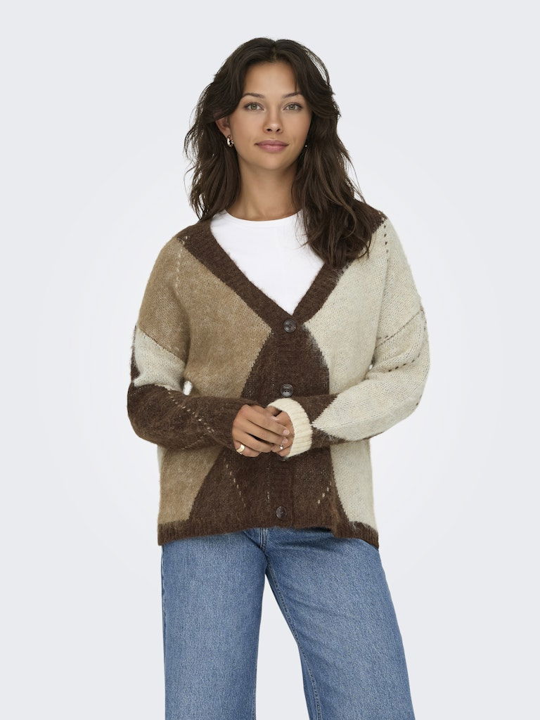 Cardigan Maro Femei: 58% Poliester Reciclat, 24% Acrilic, 10% Lână, 8% Nailon