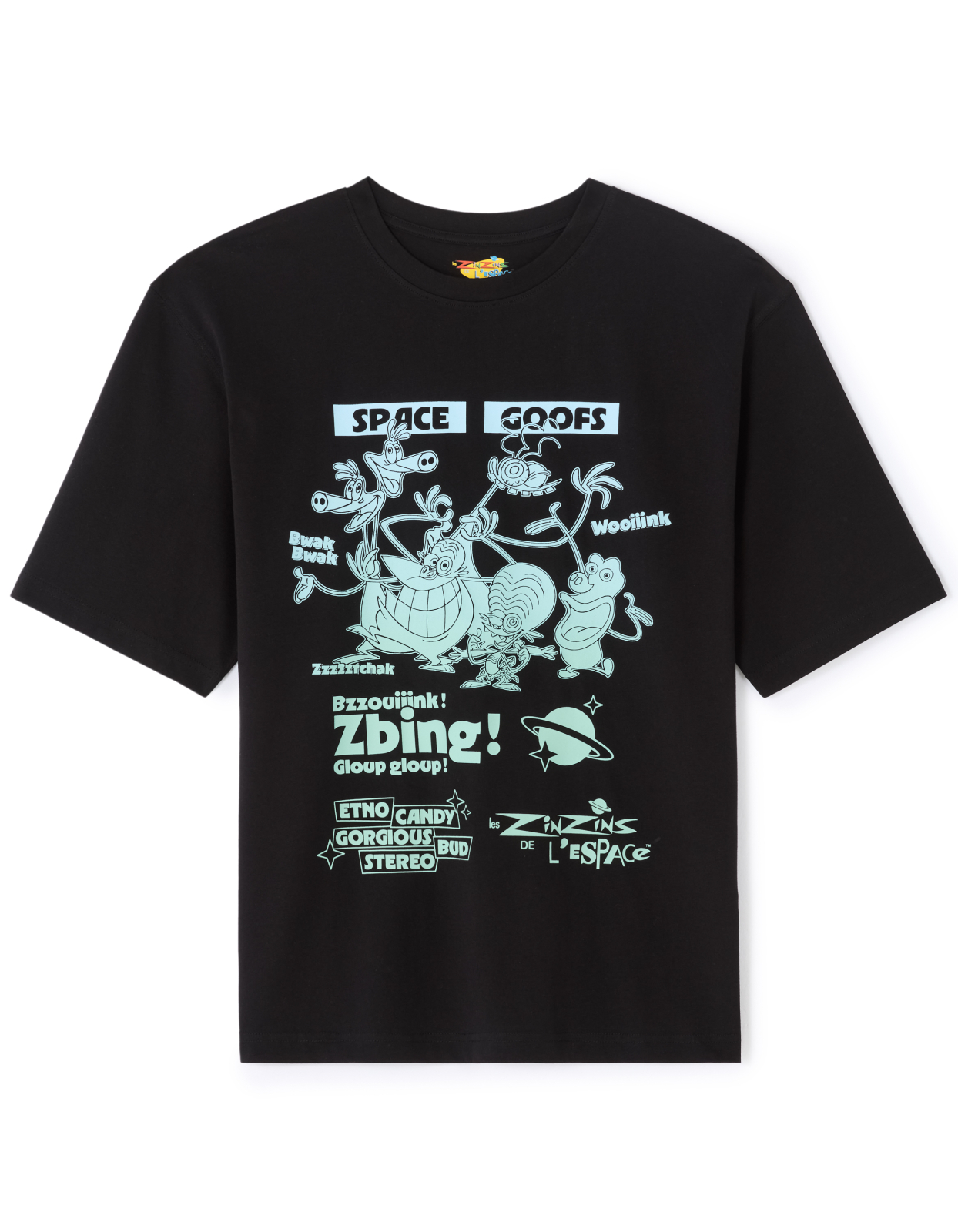 Space Goofs: Patru extraterestri foarte diferiti Etno, intelectualul inventiv, Candy, exuberant si amuzant, Superb, arogant si naiv, si Orbit, stangaci si credincios, se refugiaza pe Pamant dupa ce au fost alungati de pe planeta lor. Pentru barbatul care iubeste umorul excentric, exprima-ti stilul cu tricoul nostru cu licenta de cult!