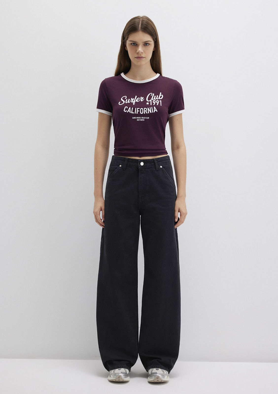 Blugi Gri Inchis Kimberly Wide Leg Femei: 100% Bumbac
