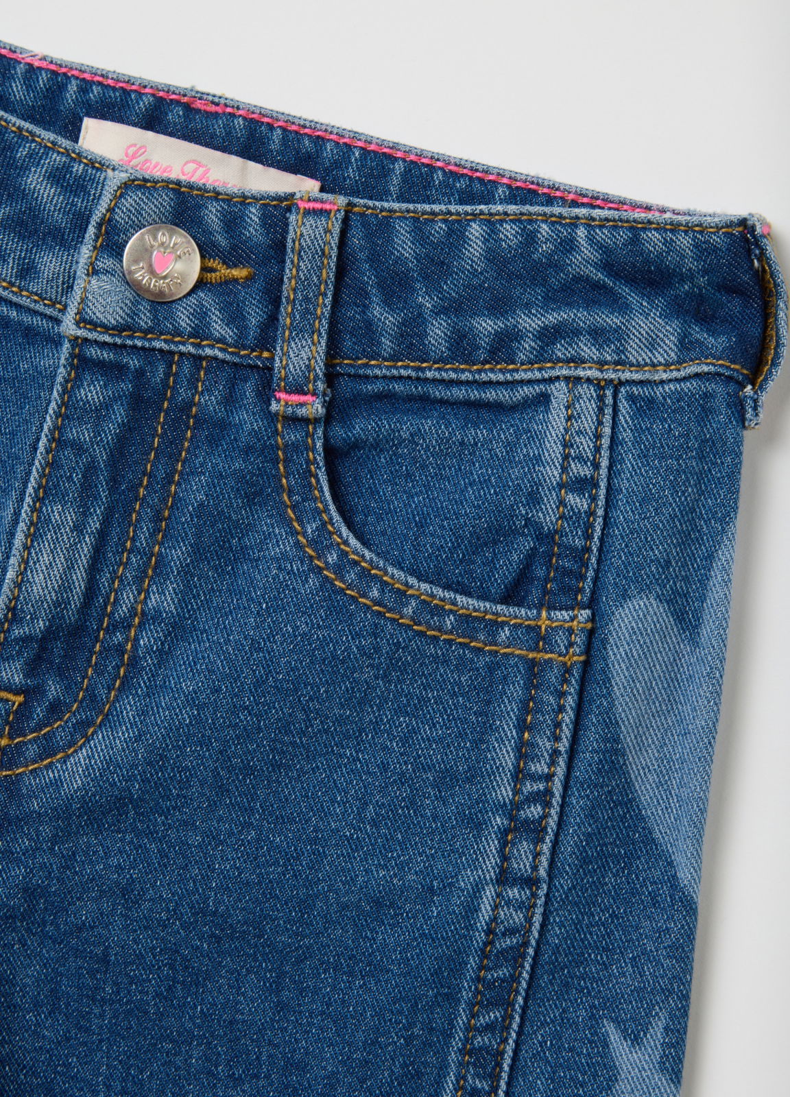 Caracteristici: Love Therapy prezintă acești blugi din bumbac albastru pentru fete cu vârste între 3 și 10 ani. Cu o croială evazată, aceștia oferă confort și practicitate pe tot parcursul zilei. Talia regular are curea reglabilă pentru o potrivire optimă. Inimioarele și stelele brodate adaugă o notă jucăușă garderobei.