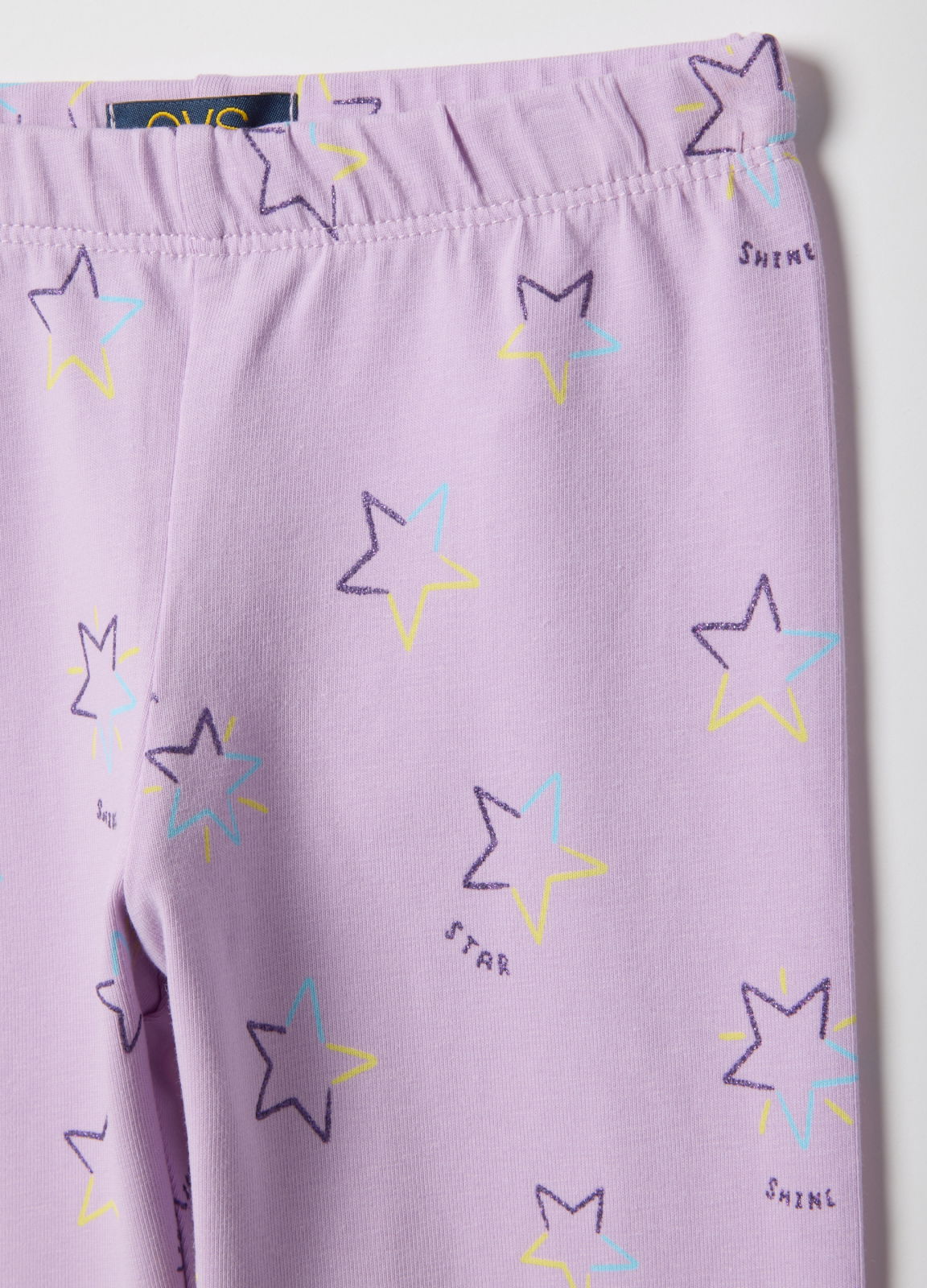 Caracteristici: Acești colanți mov din bumbac elastic din linia OVS KIDS sunt ideali pentru fete cu vârste între 3 și 10 ani, oferind confort și libertate de mișcare. Designul jucăuș cu imprimeuri colorate de stele adaugă un strop de veselie oricărei ținute. Talie elastică asigură o croială practică și skinny, perfectă pentru zilele active.