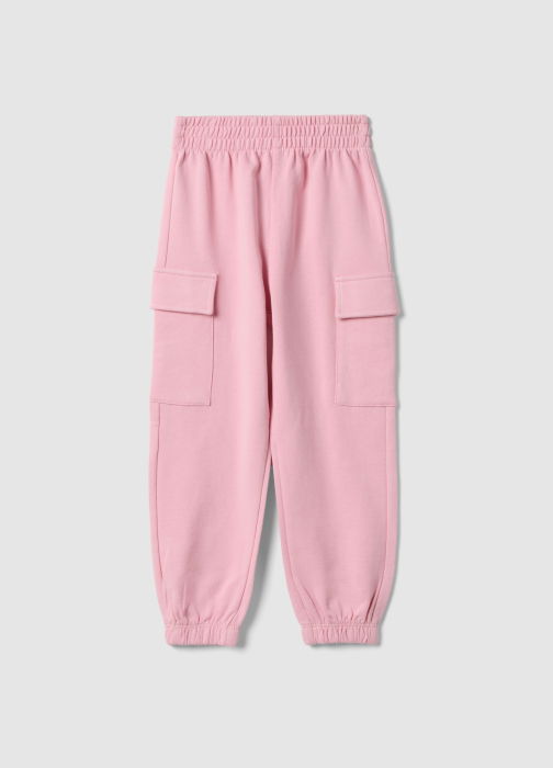 Tip Produs: Pantaloni cargo roz pentru fete, croială regular, din bumbac pur
