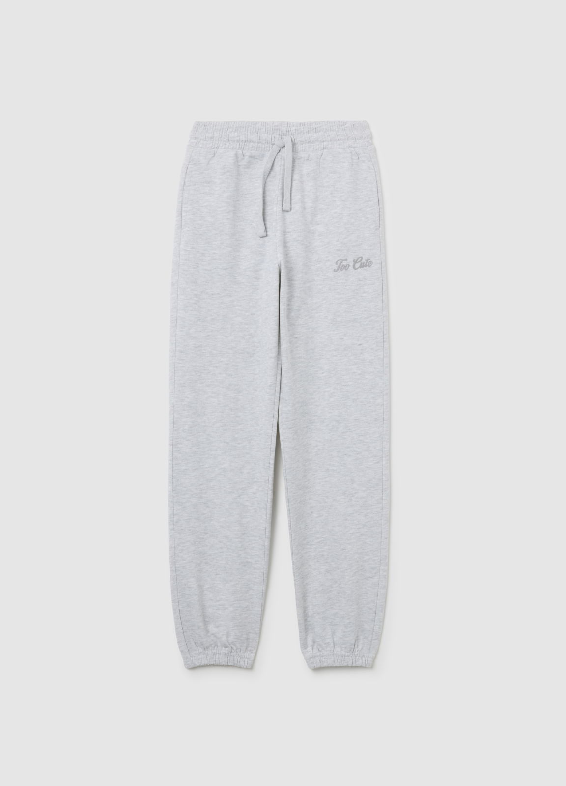 Tip Produs: Pantaloni jogger gri pentru fete, din amestec de bumbac, croi regular
