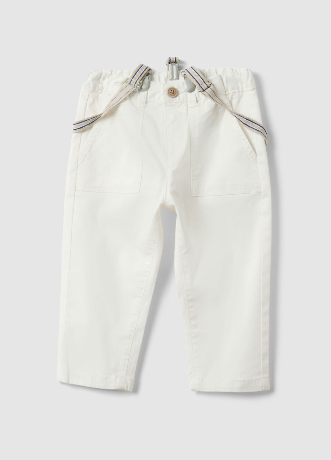 Tip Produs: Pantaloni albi din bumbac elastic, croială normală pentru băieți