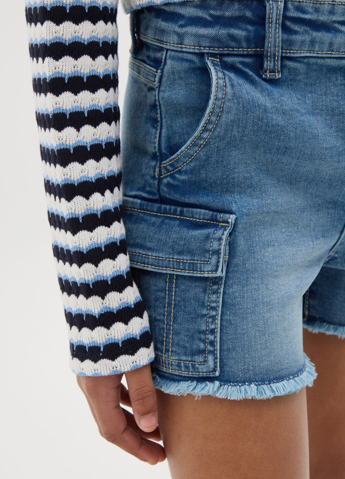 Tip Produs: Șorturi cargo din denim cu tiv ciufulit