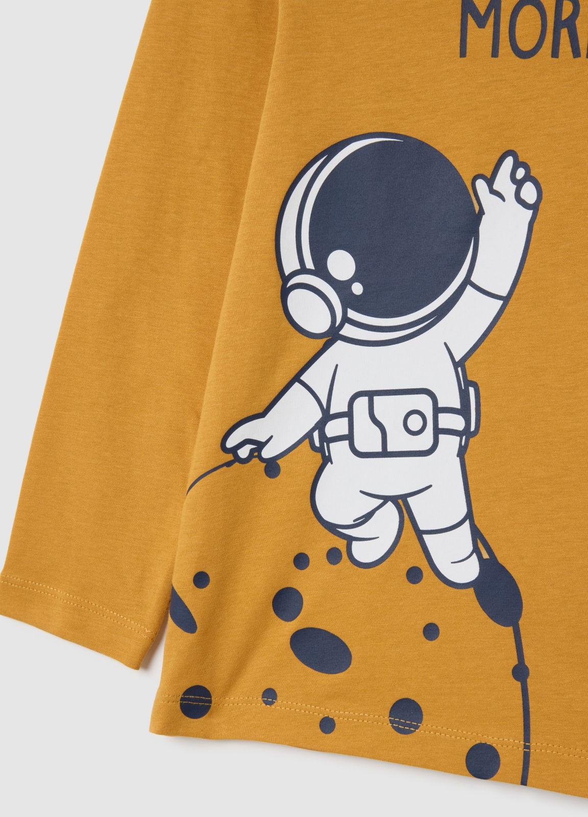 Caracteristici: Aceste pijamale din linia OVS Kids pentru copii cu vârsta între 3 și 8 ani sunt o alegere excelentă pentru nopțile mai reci. Topul galben cu mâneci lungi are un imprimeu amuzant cu astronaut, iar pantalonii albaștri oferă un design moale și confortabil. Realizate din bumbac pur, asigură căldură și confort în utilizarea de zi cu zi.