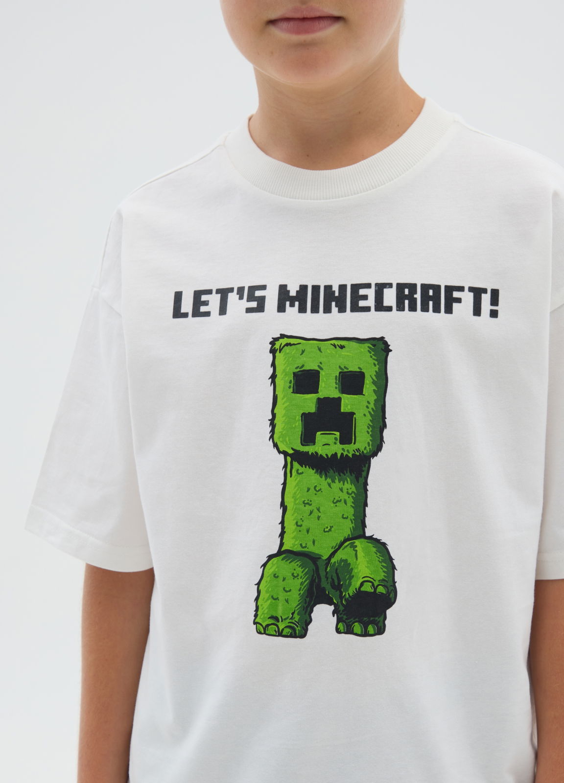 Характеристики: Белая футболка для мальчиков в возрасте от 10 до 15 лет украшена веселым принтом в стиле Minecraft, размещенным как спереди, так и сзади. Изготовлена из чистого хлопка, она обеспечивает оптимальный комфорт во время повседневной активности и игр. Прямой крой и оригинальный принт делают эту футболку уникальной находкой для юных поклонников видеоигр.