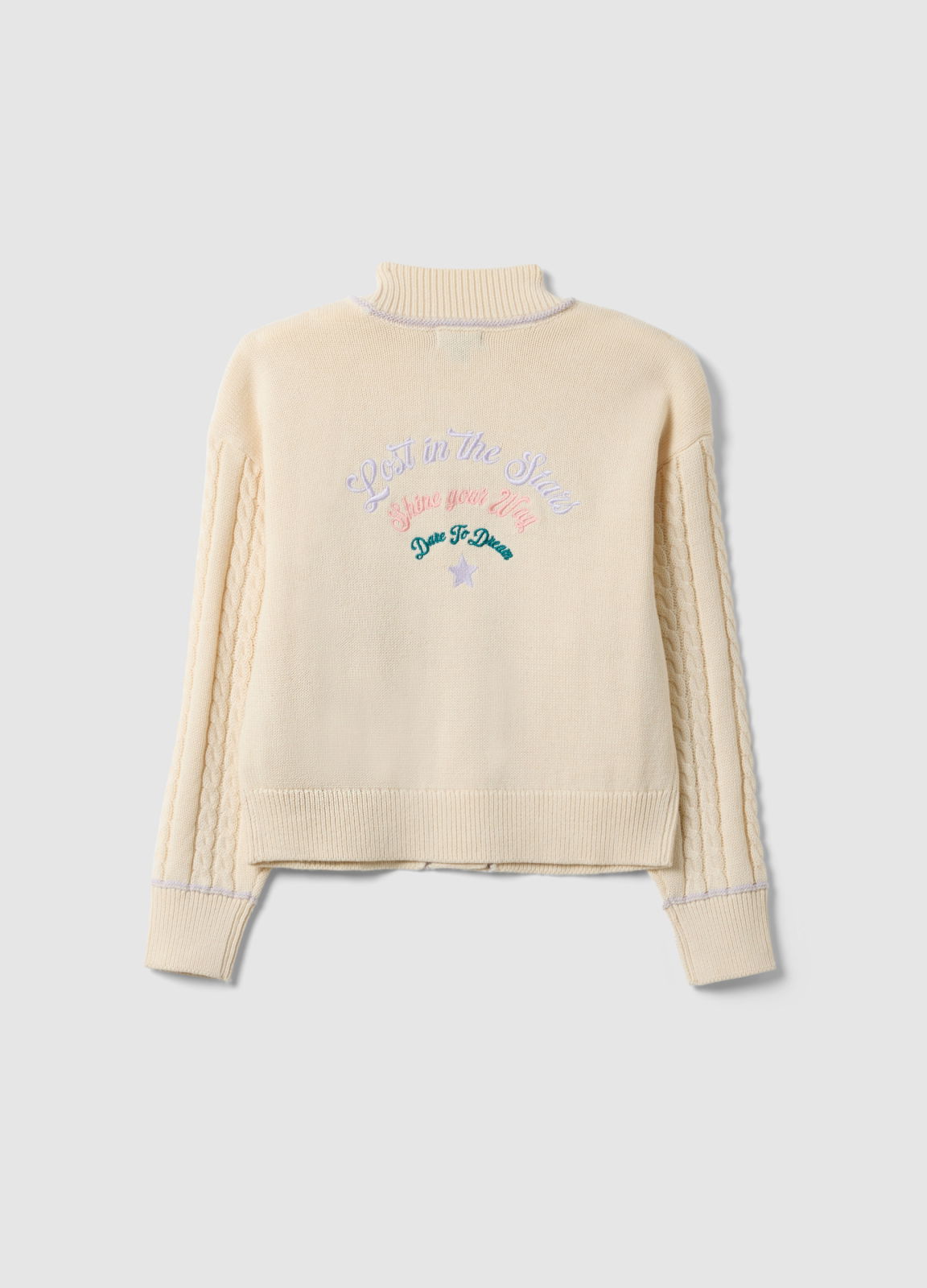 Тип продукта: Бежевый вязаный кардиган из смеси хлопка для девочек, оверсайз