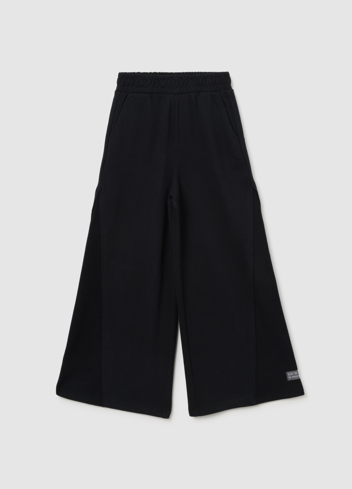 Характеристики: Чёрные брюки из хлопкового смесового материала для девочек от 10 до 15 лет из линии OVS KIDS имеют широкий крой и эластичный пояс для повседневного стиля. Брюки сочетают функциональность и комфорт, идеально подходят для тех, кто ищет удобство без ущерба стилю.