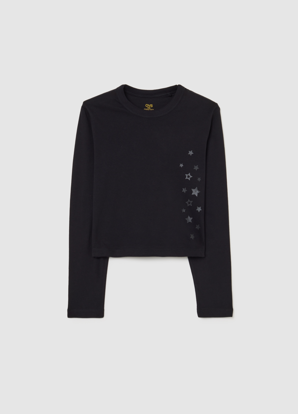 Характеристики: Чёрная футболка с длинным рукавом из коллекции OVS KIDS изготовлена из чистого хлопка для девочек от 10 до 15 лет. Простой дизайн с круглым вырезом обеспечивает комфорт, а принт со звёздами добавляет стиль.