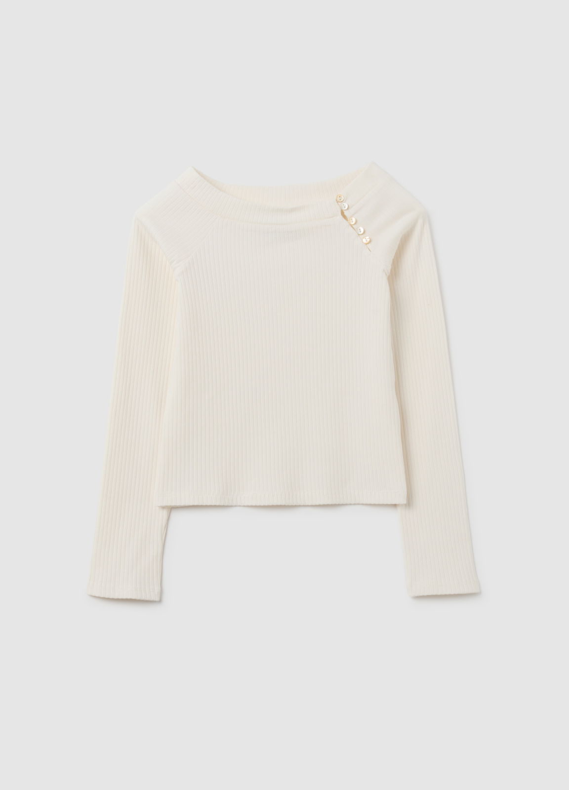 Характеристики: Этот длинный белый ребристый топ из коллекции OVS Kids для девочек 10-15 лет выполнен из хлопкового стрейча. С длинными рукавами и вырезом лодочка, украшен декоративными пуговицами на плече. Универсальная вещь, подходящая для разных случаев — от работы до более официальных вечеров.