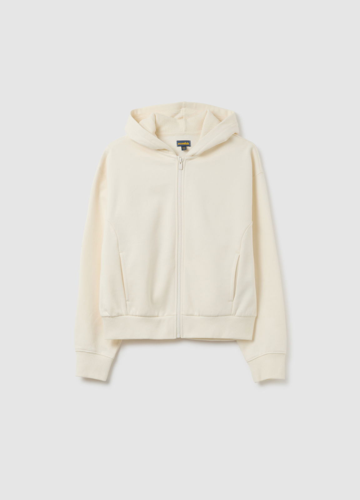 Тип продукта: Белое хлопковое худи для девочек, прямой крой, с капюшоном и молнией