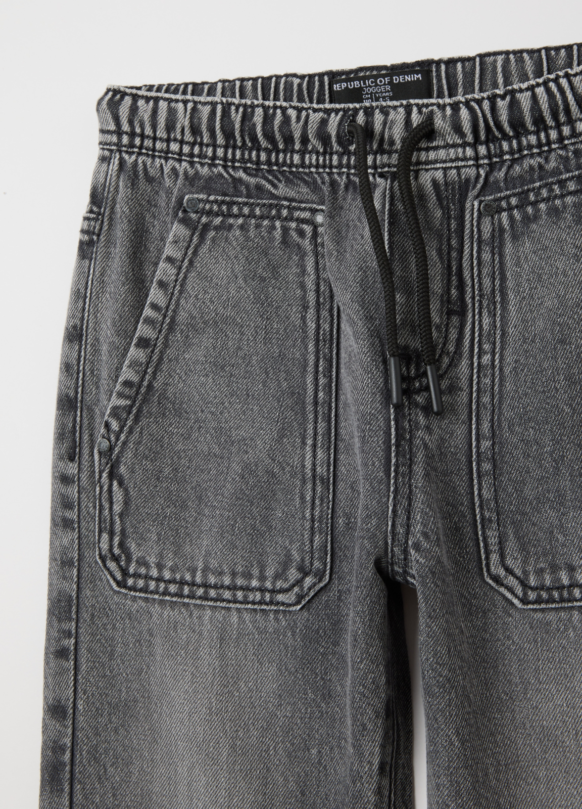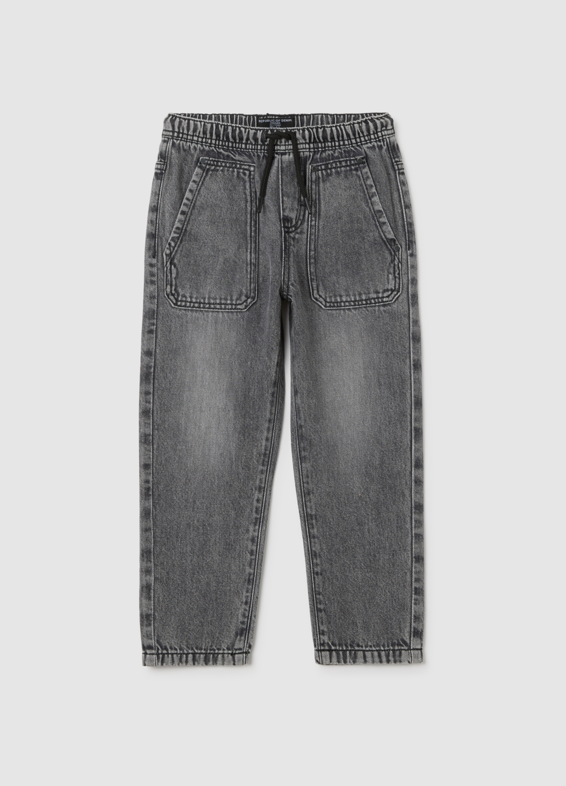 Характеристики: Серые джинсы-джоггеры линии OVS KIDS из хлопковой смеси для детей 3-10 лет. Эластичный пояс, прямой крой, стильные карманы с вышивкой, удобные для осени и зимы
