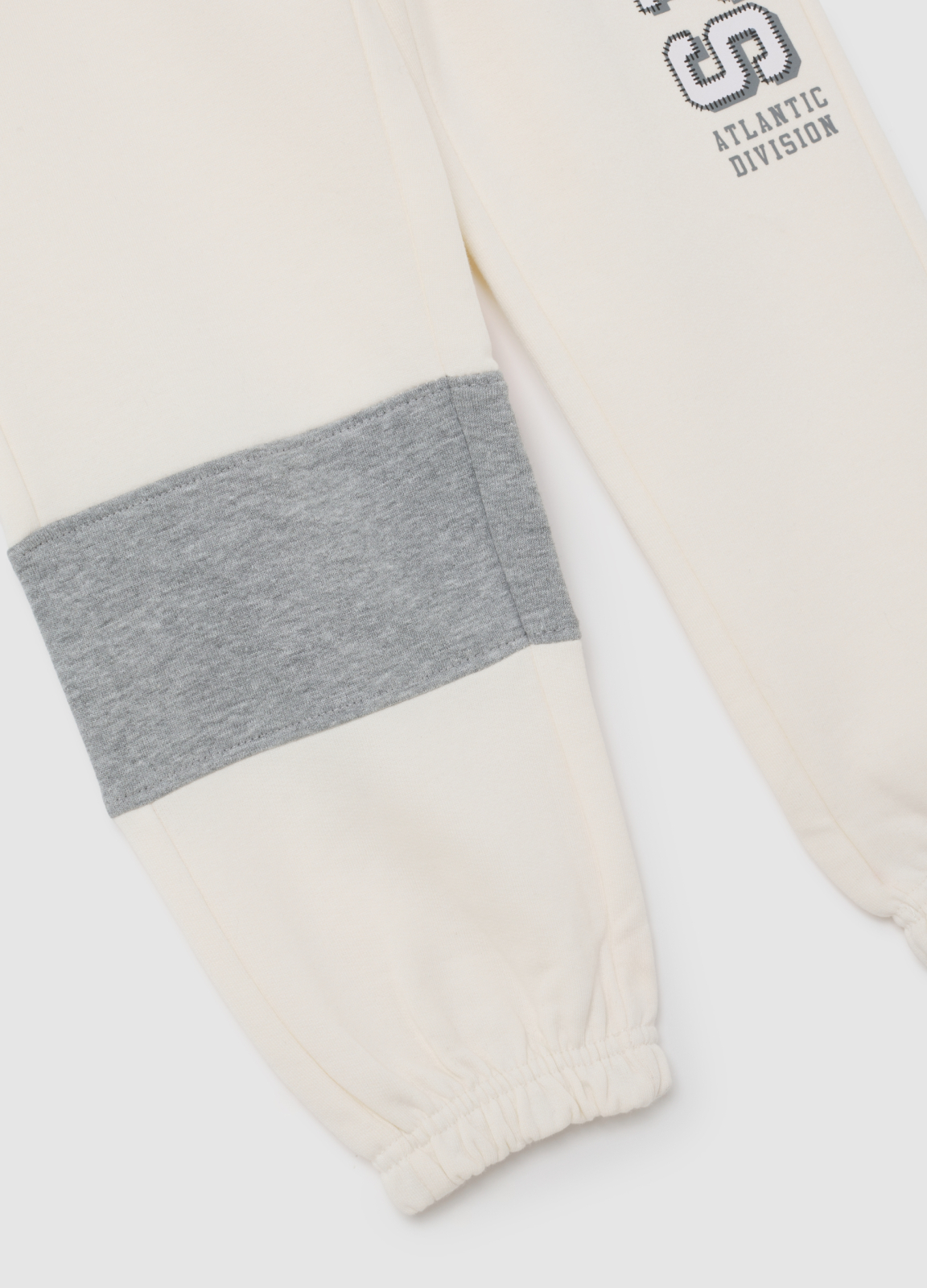 Характеристики: Белые джоггеры из хлопкового смешанного материала для детей от 3 до 10 лет из линии OVS имеют свободный крой, удобны для движения и игр. Эластичная талия обеспечивает комфорт, спортивный дизайн с логотипом Nets добавляет повседневный стиль.