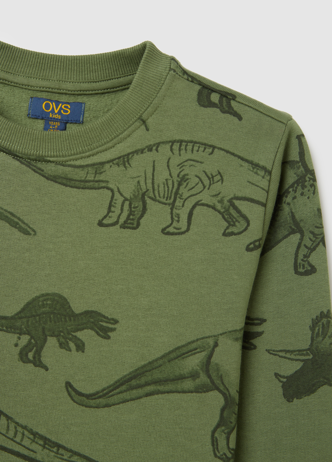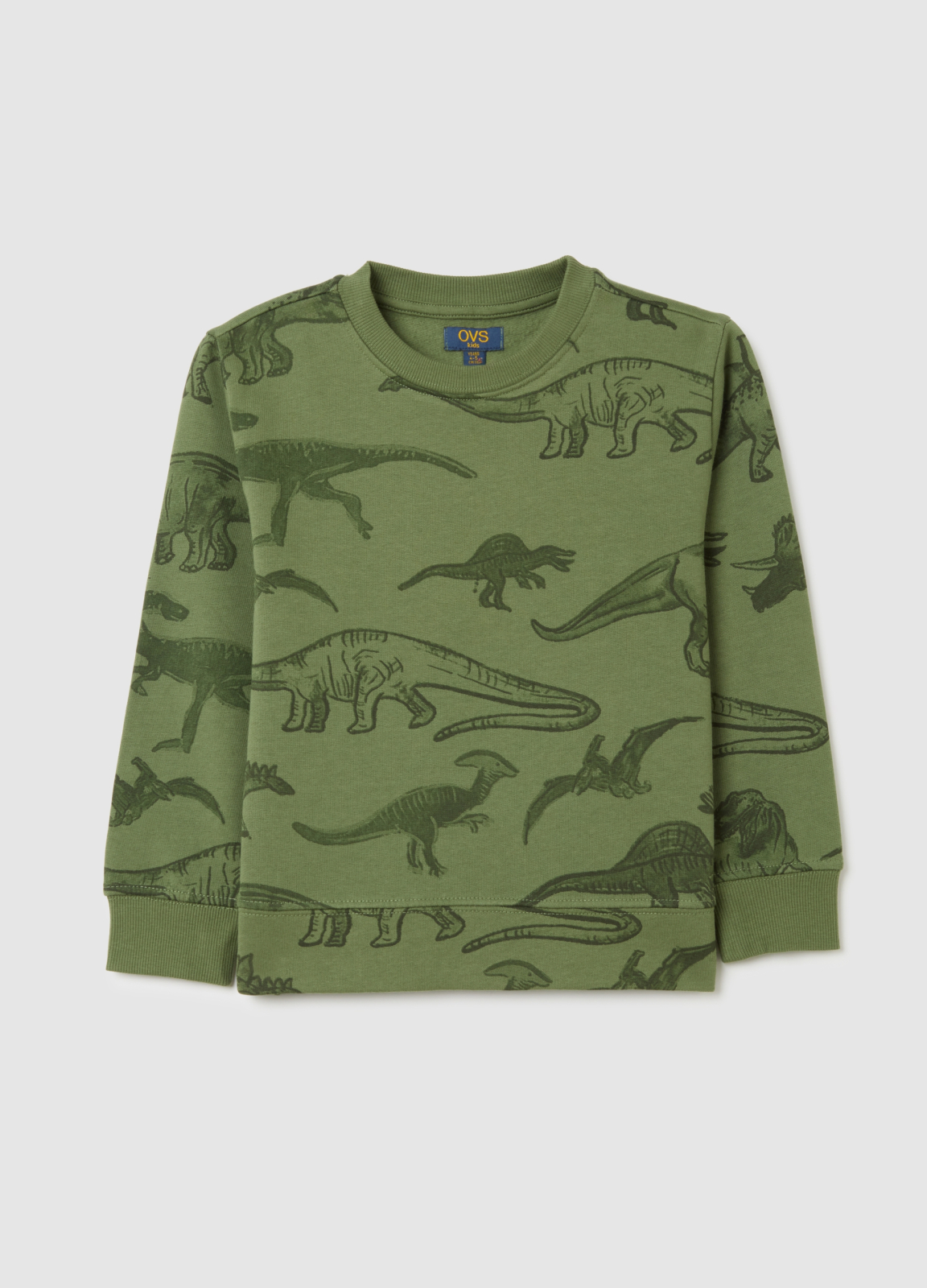 Характеристики: Зелёный свитшот для детей 3–10 лет из линии OVS KIDS с ярким принтом динозавра. Выполнен из чистого хлопка, обеспечивает исключительный комфорт и свободный крой, идеально подходит для холодных месяцев. С круглым вырезом и длинными рукавами, отлично подходит для игр на улице или отдыха.
