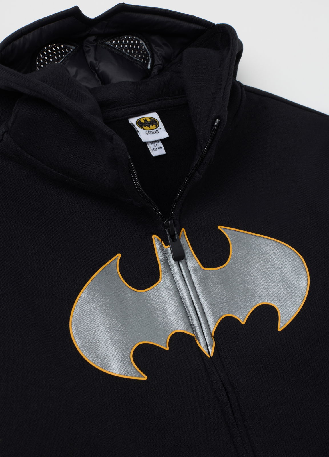 Характеристики: Черная толстовка с капюшоном из линии OVS Kids для детей 3–10 лет. Изготовлена из чистого хлопка, обеспечивает комфорт и практичность в прохладные дни. Дизайн украшен культовым логотипом Бэтмена серебристого цвета на груди и капюшоном с деталями в форме летучей мыши. Обязательный элемент гардероба для поклонников супергероев, идеально подходит для повседневного и веселого образа.