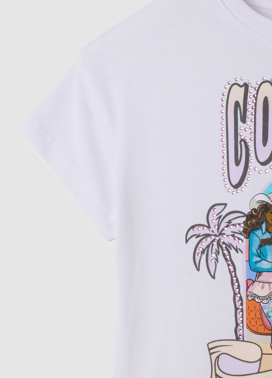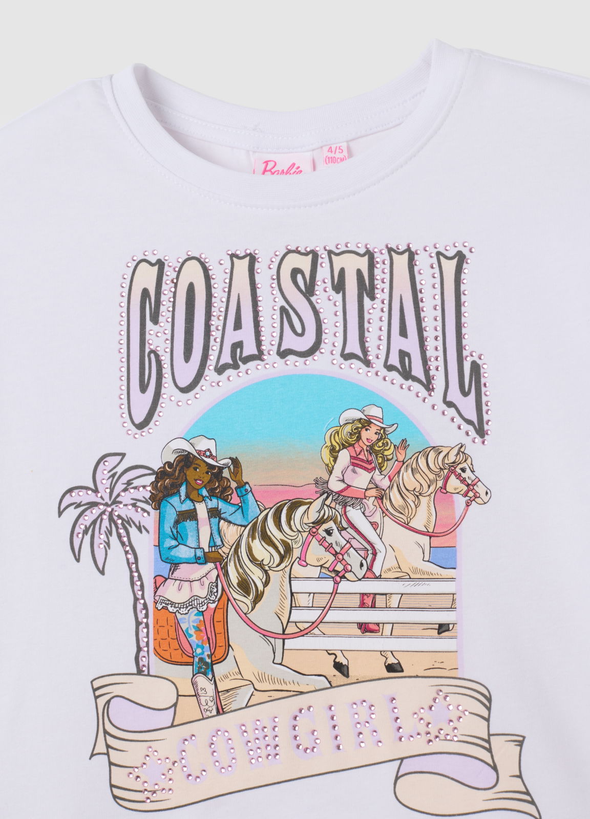 Тип продукта: Белая хлопковая футболка для девочек с эластичной посадкой, обычный крой