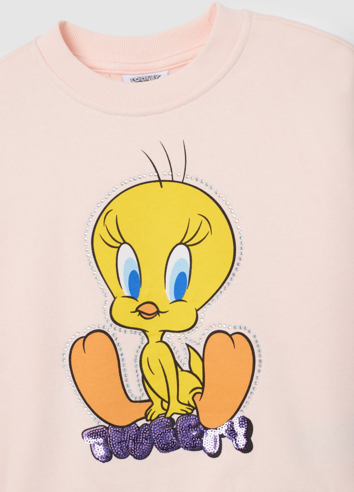 Характеристики: Этот комплект для девочек 3–10 лет из линейки OVS KIDS включает розовый свитшот с изображением Твити спереди и длинные черные брюки. Изготовлен из хлопкового смесового материала, обеспечивает комфорт и тепло зимой. Свободный крой и круглый вырез делают его практичным, а эластичный пояс обеспечивает идеальную посадку.