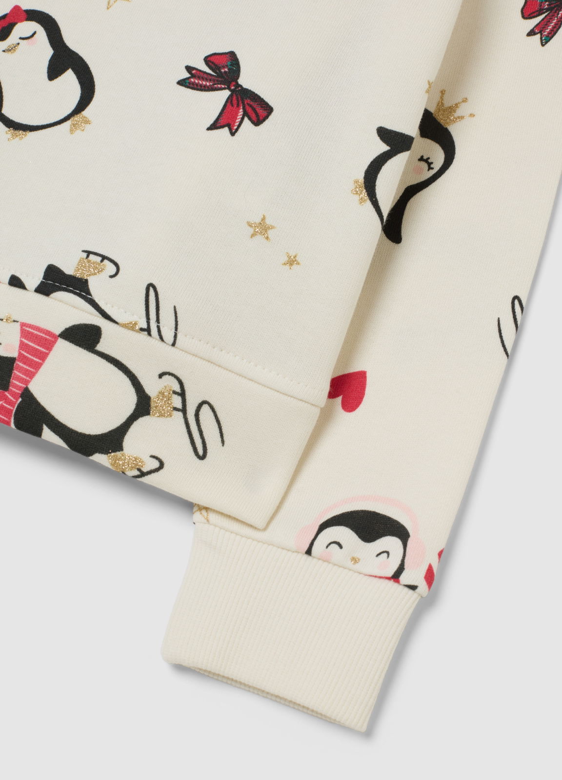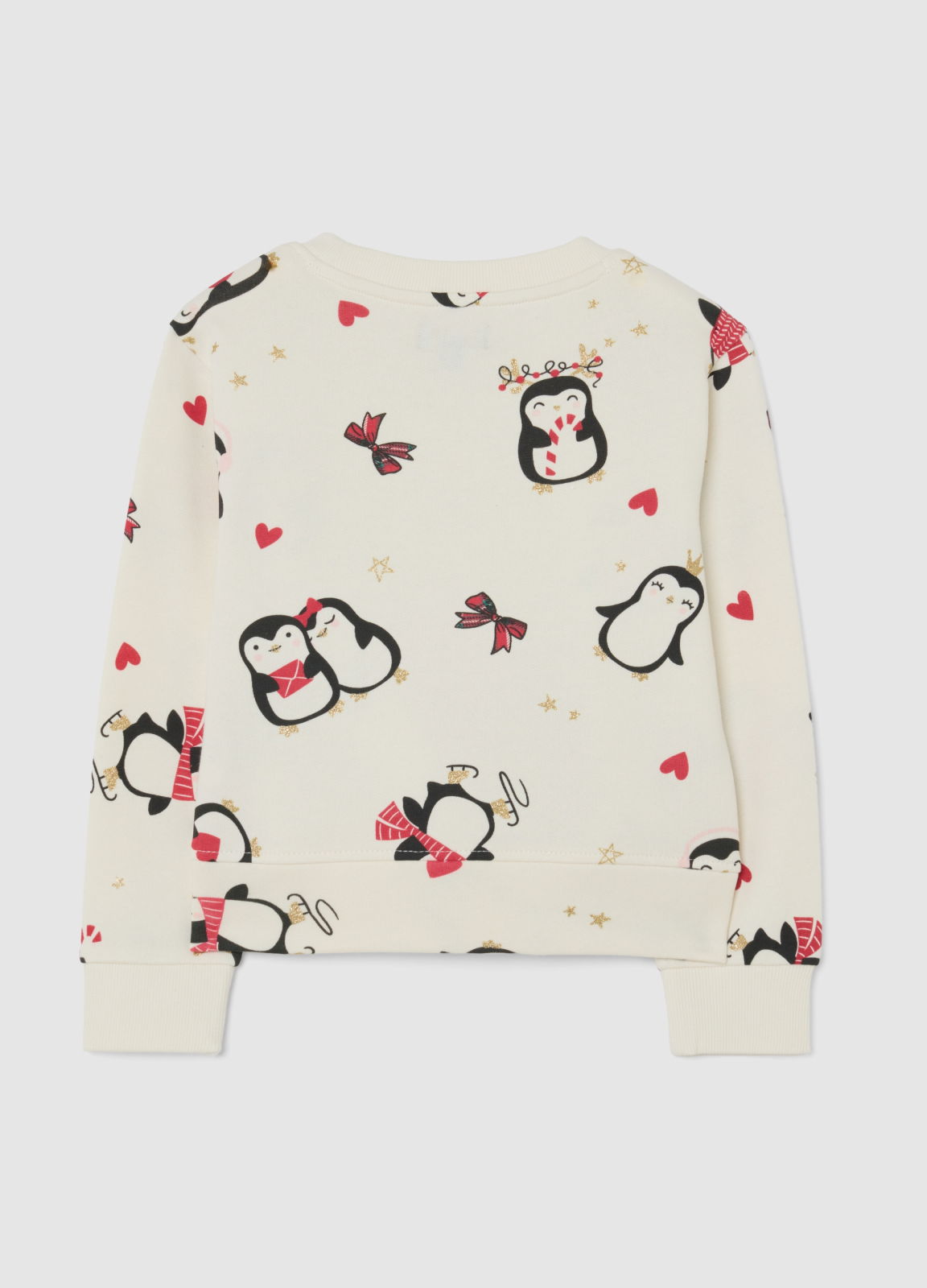 Характеристики: Этот белый свитшот из линии OVS KIDS для девочек 3–10 лет выполнен из чистого хлопка, обеспечивая тепло и комфорт зимой. Прямой крой, длинные рукава и круглый вырез делают его практичным, а яркий рождественский принт с пингвинами придаёт праздничное настроение.