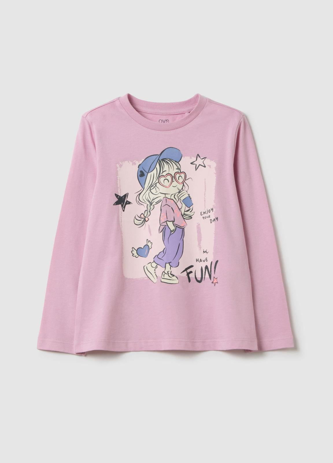 Тип продукта: Розовая хлопковая футболка для девочек с принтом