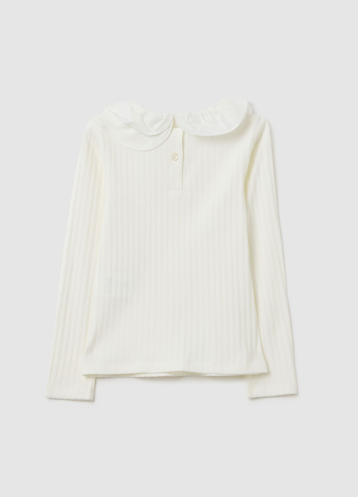 Характеристики: Белая обтягивающая хлопковая рубашка для девочек 3–10 лет из линии OVS KIDS с круглым вырезом и рюшами, добавляющими оригинальность. Застёжка на пуговицы сзади обеспечивает удобство и комфорт. Обычный крой делает её универсальной для разных нарядов.