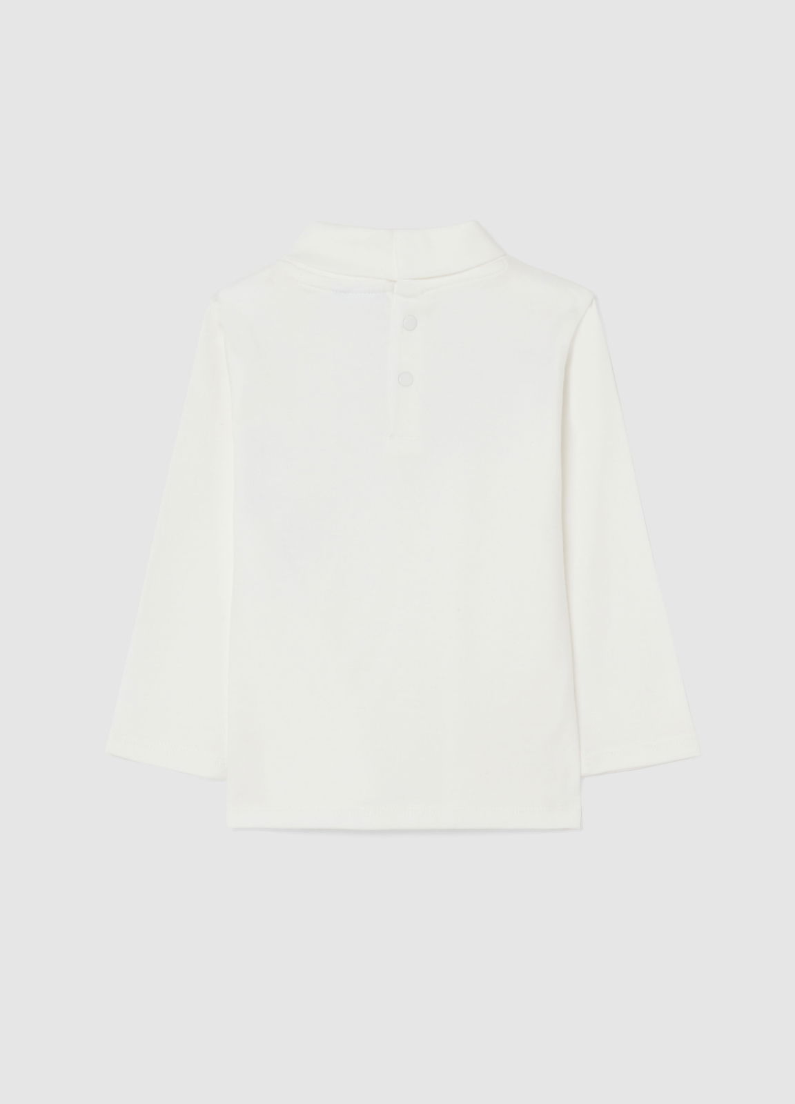 Тип продукта: Белый детский лонгслив с воротником стойкой из чистого хлопка, свободного кроя, с принтом