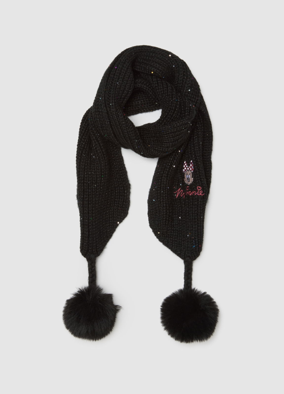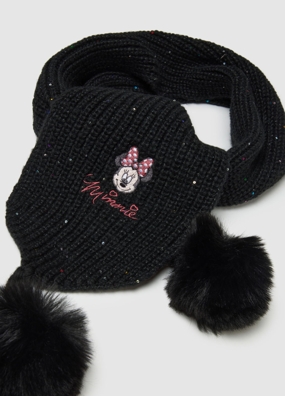 Характеристики: Чёрный шарф для малышей от 9 до 36 месяцев из линейки OVS KIDS обеспечивает мягкость и комфорт. Украшен вышивкой Минни и мягкими помпонами на концах, добавляя радости зимнему образу.