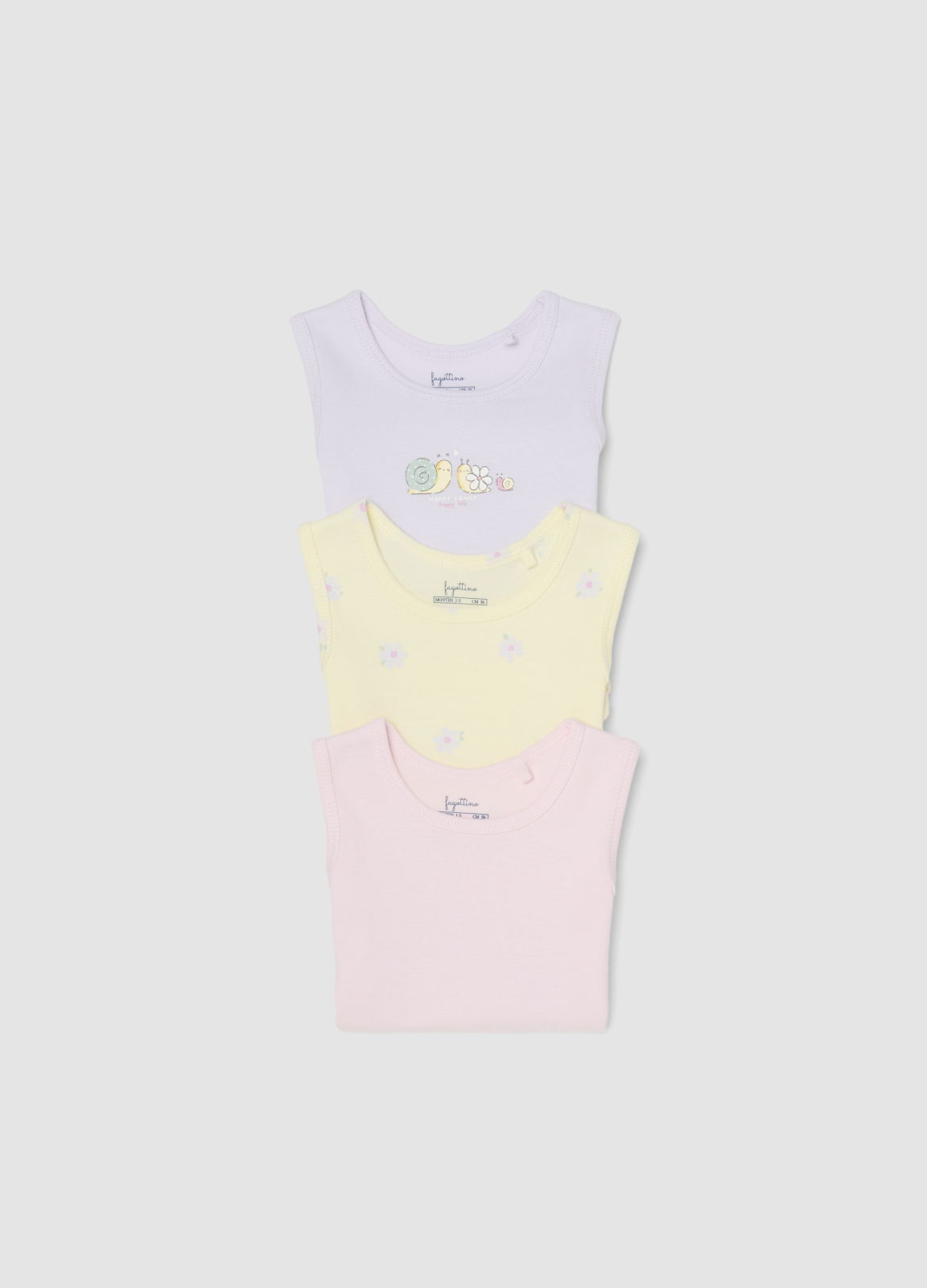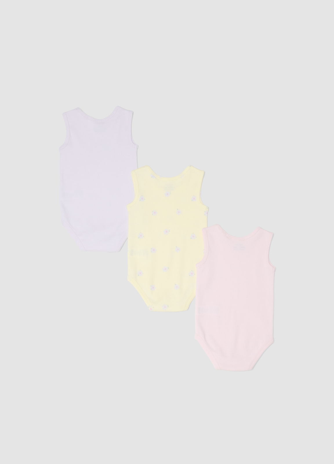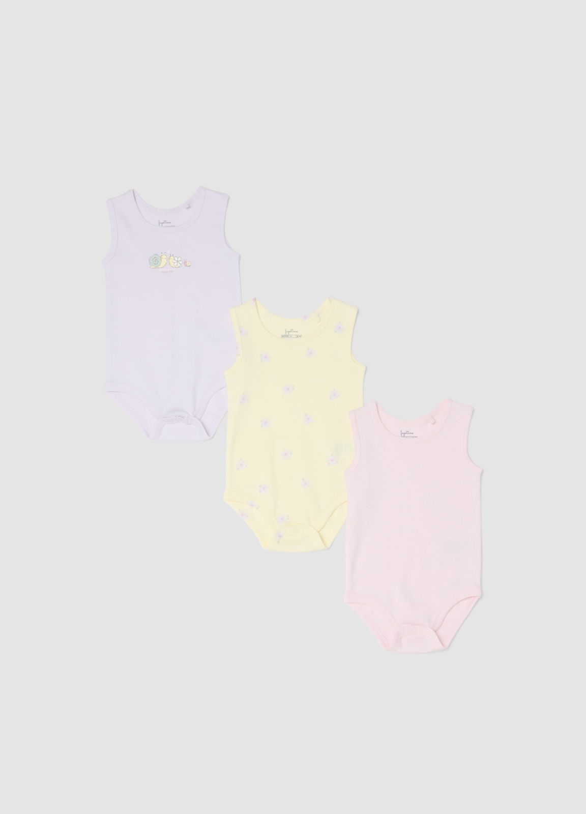 Характеристики: Боди трипак разноцветный, 100% хлопок, для новорожденных 0-36 месяцев, без рукавов, кнопки, мягкий и комфортный для нежной кожи.