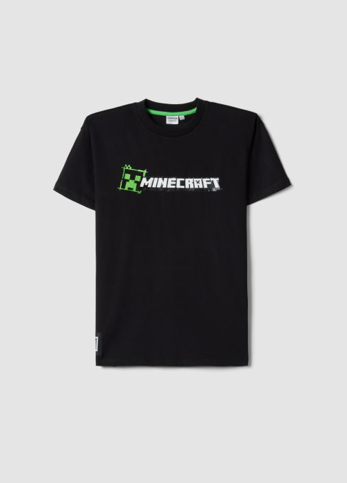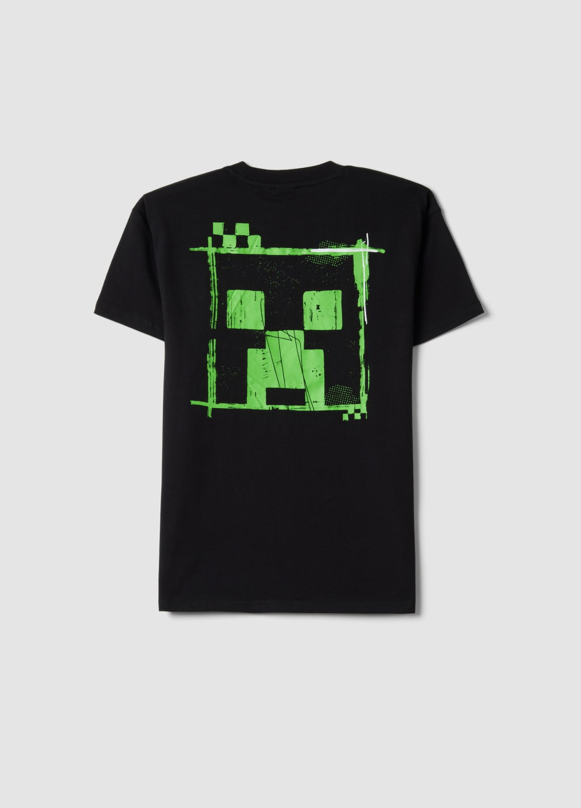 Характеристики: Чёрная футболка Minecraft, для мальчиков 10-15 лет, из 100% хлопка, relaxed fit, короткие рукава, круглый вырез, мягкая и дышащая, принты игры, универсальная для весны и лета.