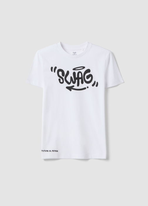 Тип продукта: Футболка для мальчиков белая, из 100% хлопка, обычный крой, с принтом Swag