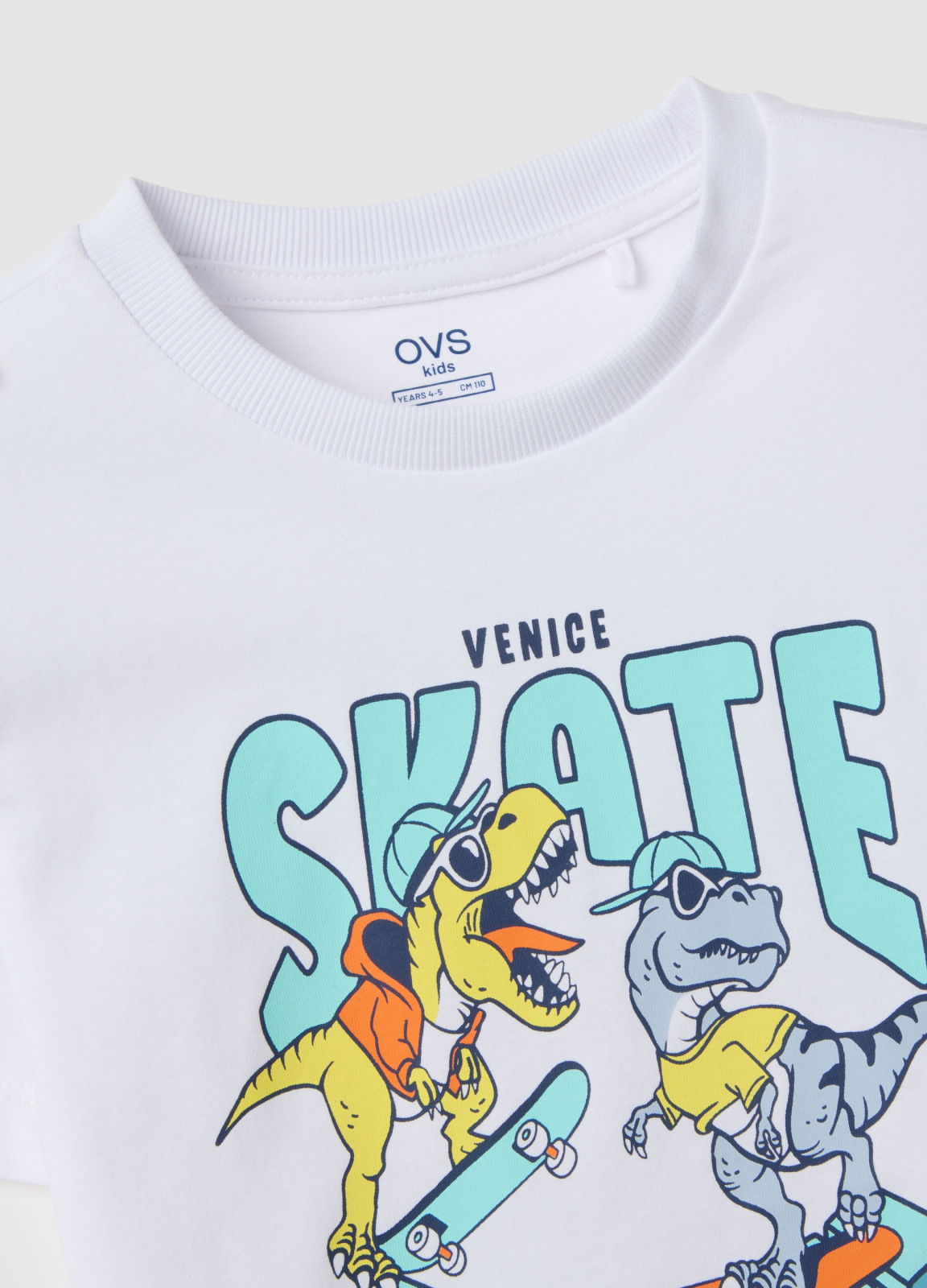 Характеристики: Белая футболка из 100% хлопка из линейки OVS KIDS для детей 3–10 лет. Круглый вырез и короткие рукава, идеально для весны и лета. Дизайн с динозаврами на скейтборде, идеально для маленьких исследователей. Свободный крой обеспечивает свободу движений на улице.