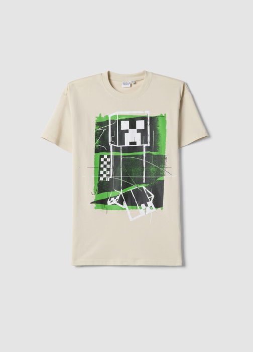 Характеристики: Бежевая футболка Minecraft с коротким рукавом, 100% хлопок, relaxed fit, круглый вырез, принт Minecraft, комфорт и практичность, прочность и мягкость для повседневного использования.