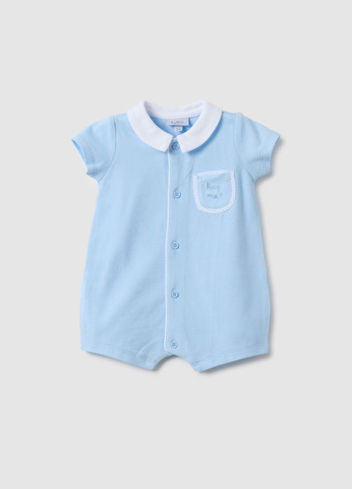Характеристики: Голубой комбинезон из линии Fagottino изготовлен из 100% хлопка, обеспечивая комфорт на коже малыша. Имеет заостренный воротник и застежку на кнопках, облегчая одевание. Короткие рукава и легкий дизайн делают его идеальным для лета, обеспечивая прохладу и свободу движений.