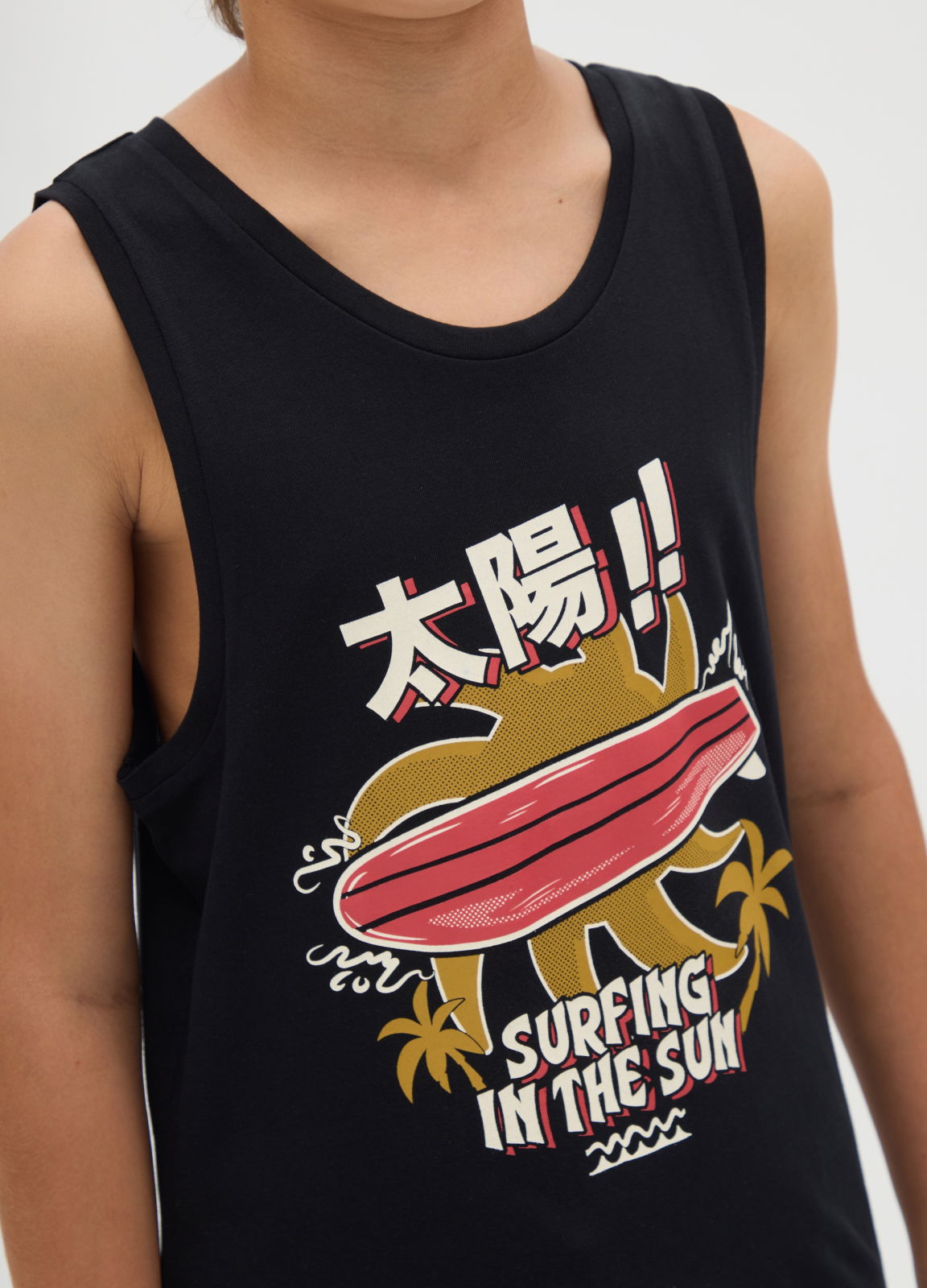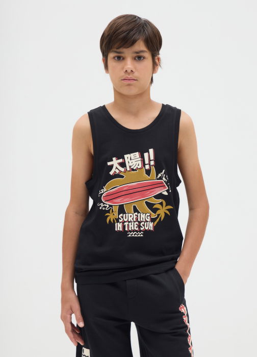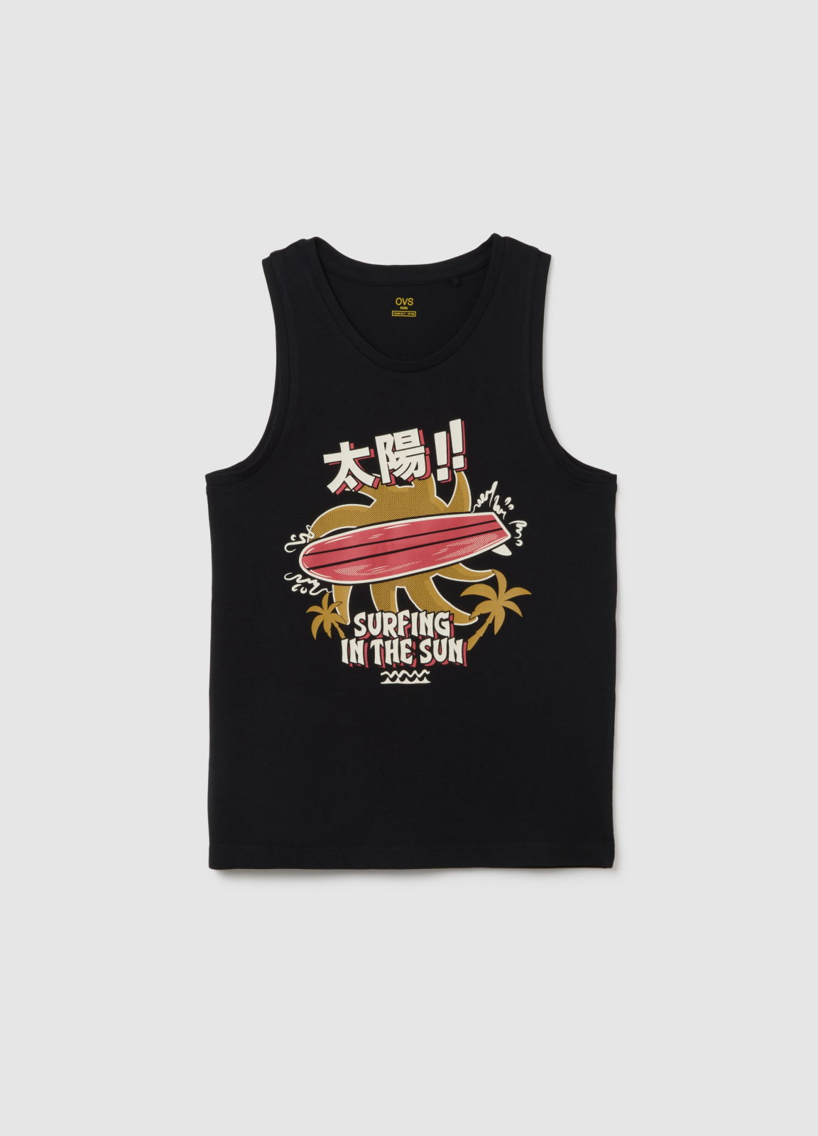 Характеристики: Чёрная хлопковая безрукавка из линии OVS Kids для мальчиков 10-15 лет. Украшена эксклюзивным серф-графическим принтом, идеально подходит для лета и активного отдыха. Безрукавный дизайн создаёт повседневный стиль и комфорт в жаркую погоду. Универсальна и практична для любого случая.