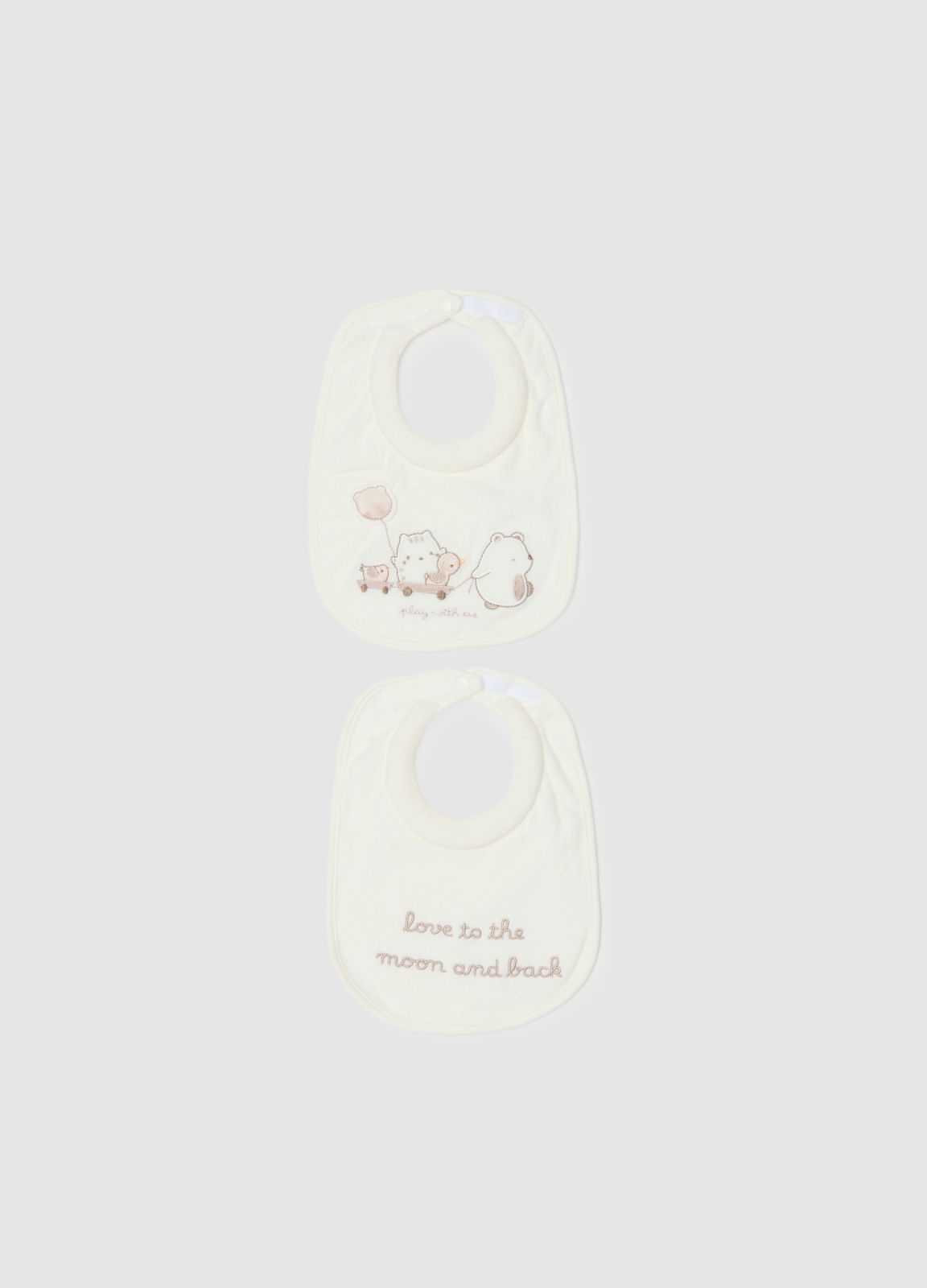Тип продукта: Набор из двух белых детских слюнявчиков из хлопка, обычная посадка