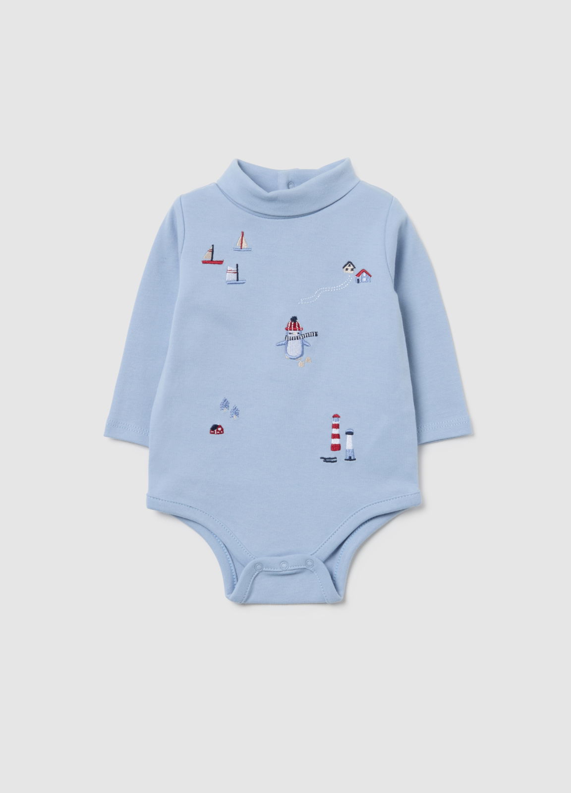 Характеристики: Боди Fagottino из чистого синего хлопка для новорождённых с длинными рукавами и высоким воротником обеспечивает тепло и защиту. Практичный дизайн с застёжками на спине и по бокам облегчает переодевание. Рождественские принты добавляют праздничности.