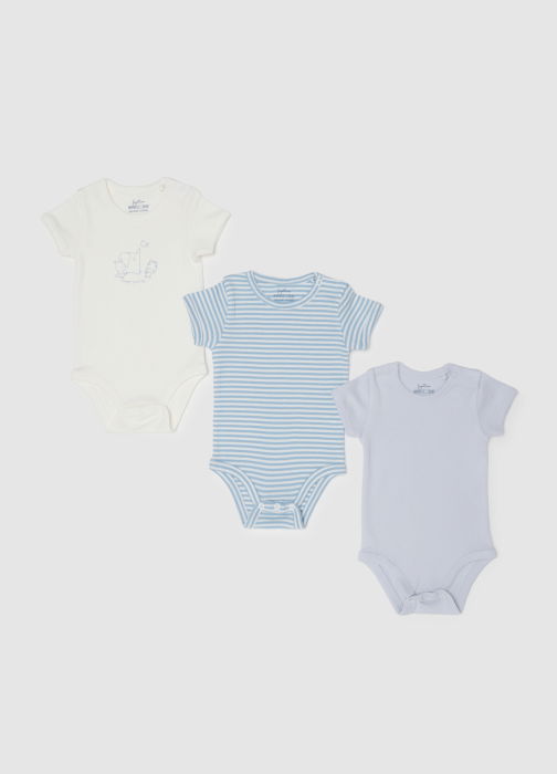 Тип продукта: Набор из трёх разноцветных боди для малышей из чистого хлопка с застёжкой на кнопки