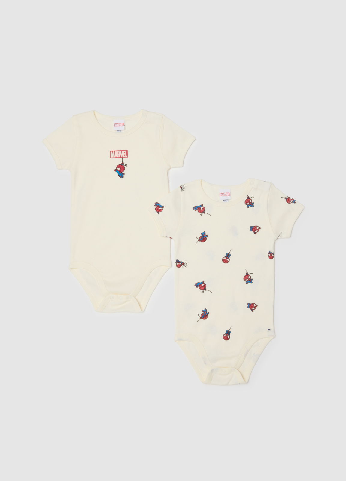 Характеристики: Набор из двух бежевых боди из линии Disney выполнен из чистого хлопка и украшен принтами Человека-паука.