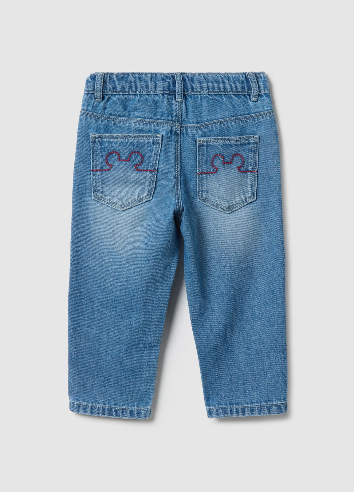 Характеристики: Джинсы OVS KIDS из чистого хлопка идеально подходят для детей от 9 до 36 месяцев. Эта модель прямого кроя оснащена регулируемой талией для оптимального комфорта. Классический дизайн включает пять карманов и милый патч с Микки Маусом, добавляющий игривый штрих изделию.