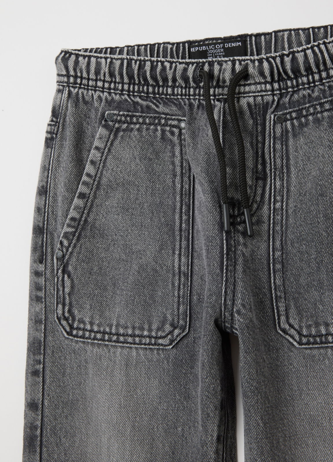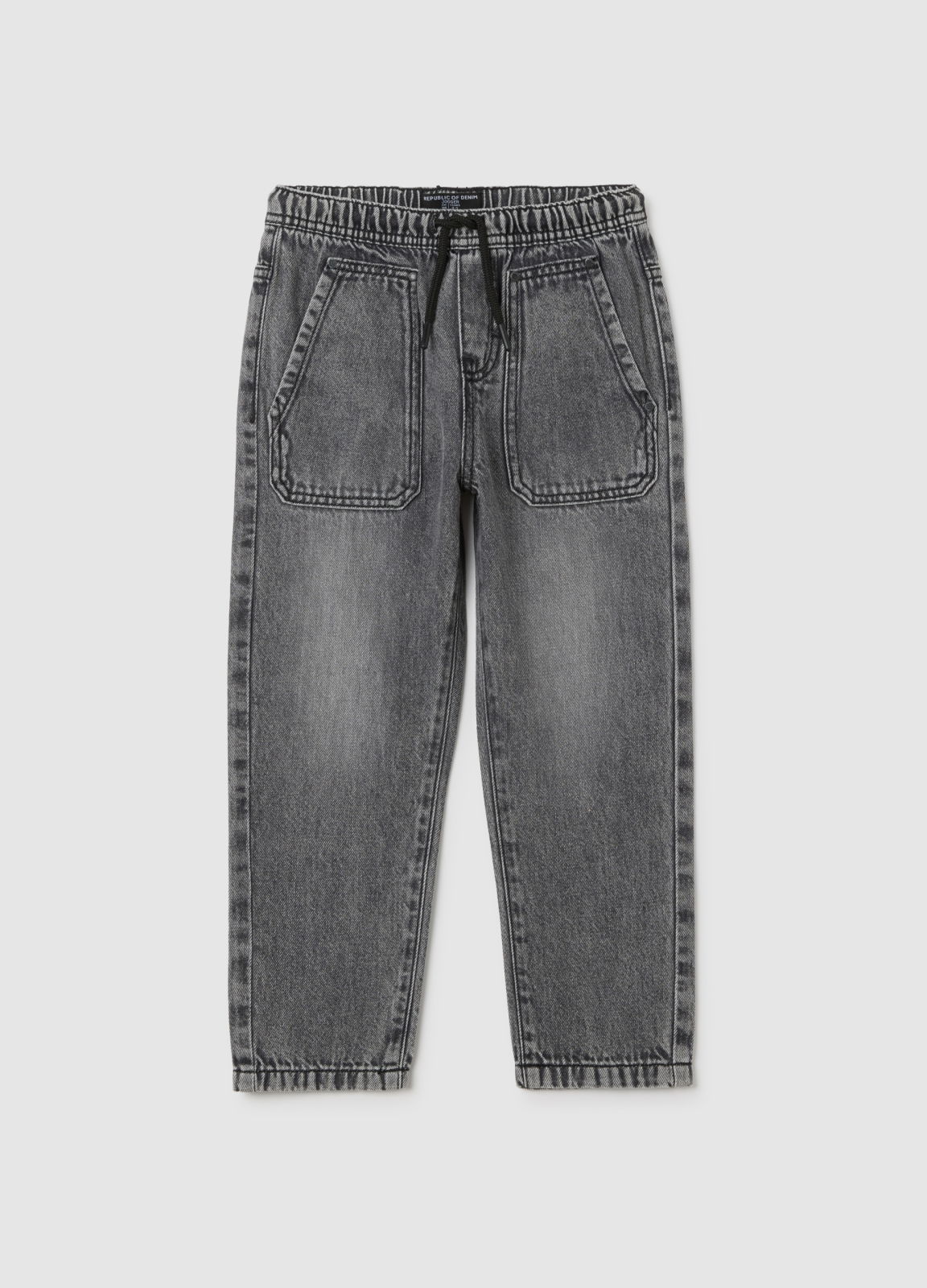 Характеристики: Серые джинсы-джоггеры линии OVS KIDS из хлопковой смеси для детей 3-10 лет. Эластичный пояс, прямой крой, стильные карманы с вышивкой, удобные для осени и зимы